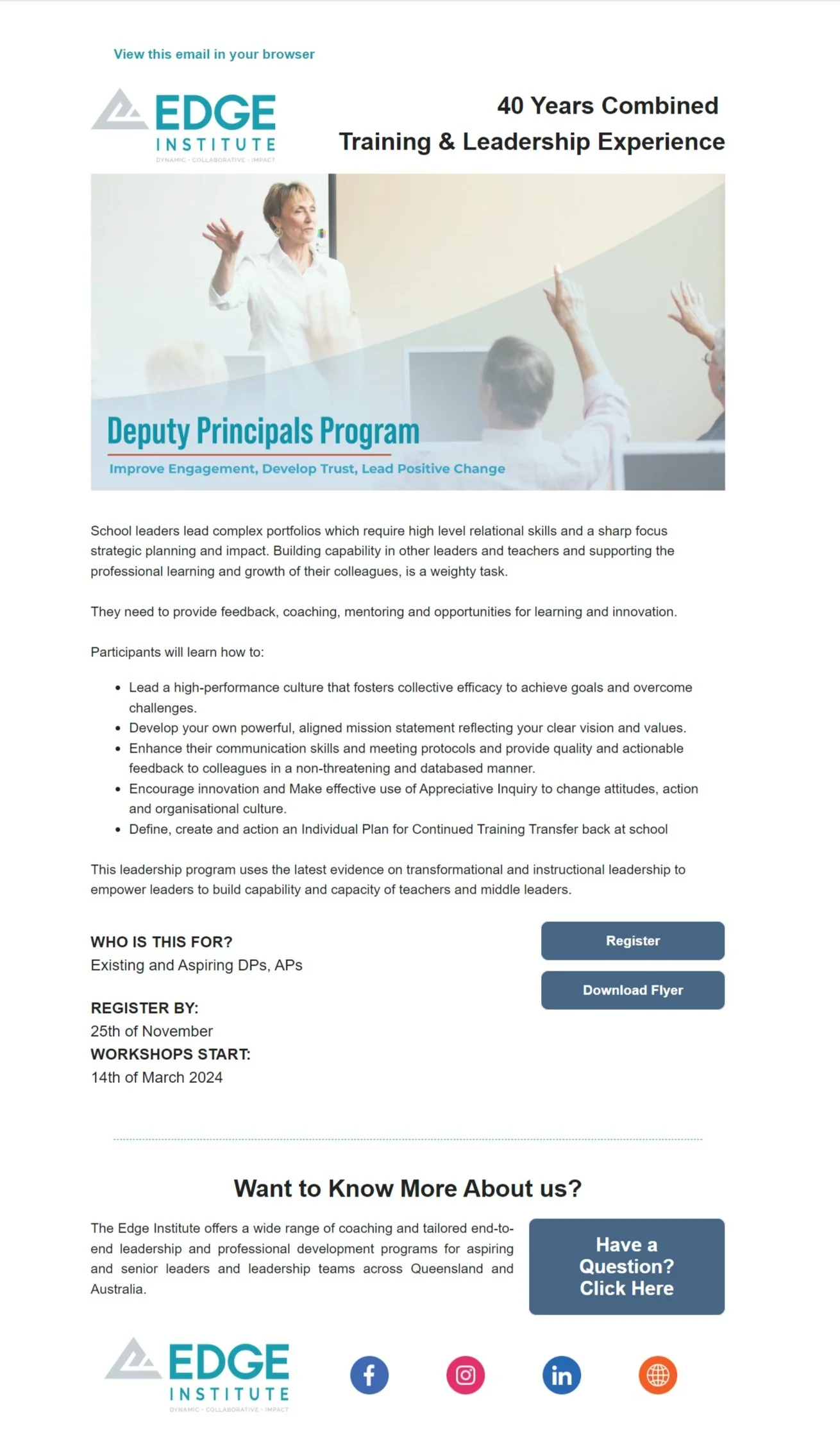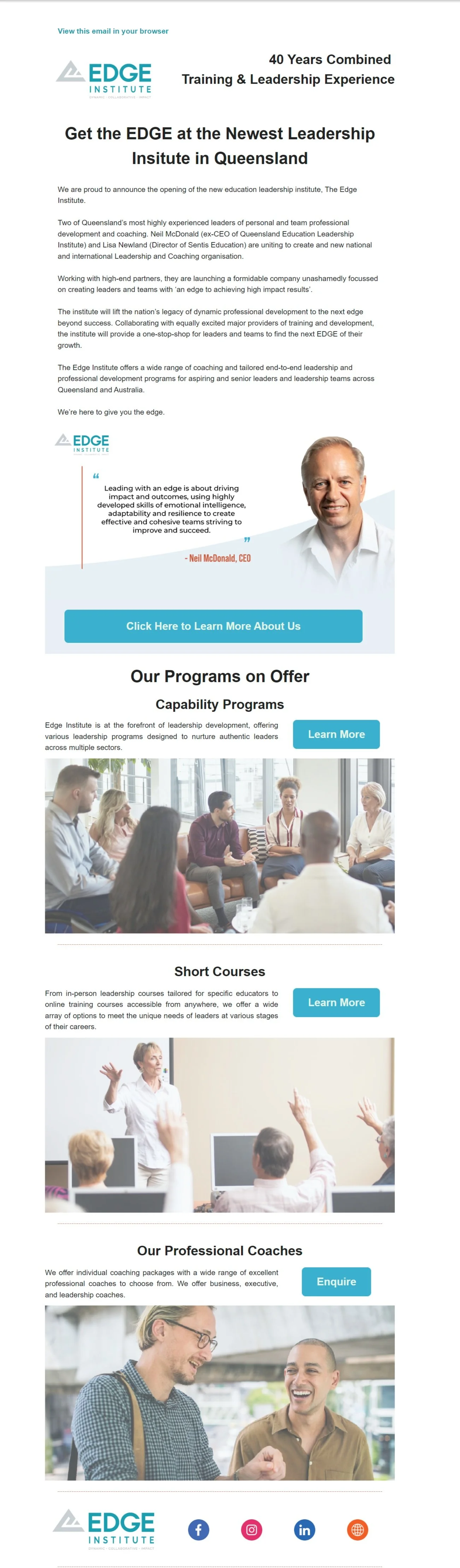 Edge Institute is at the forefront of leadership development, offering various leadership programs designed to nurture authentic leaders across multiple sectors.